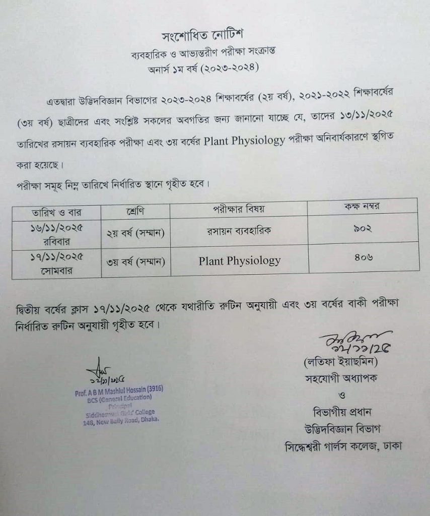 অনার্স ১ম বর্ষ (২০২৩-২৪) ব্যবহারিক ও অভ্যান্তরীণ পরীক্ষা সংক্রান্ত নভেম্বর ১২, ২০২৫ Md. Jabed Bhuiyan Spread the love