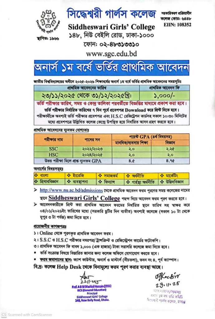 স্নাতক (সন্মান) শ্রেণিতে ভর্তি