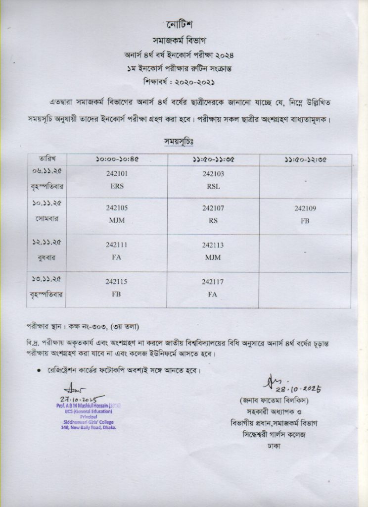 সমাজকর্ম বিভাগ অনার্স ৪র্থ বর্ষ ইনকোর্স পরীক্ষা ২০২৪ অক্টোবর ২৯, ২০২৫ Md. Jabed Bhuiyan Spread the love
